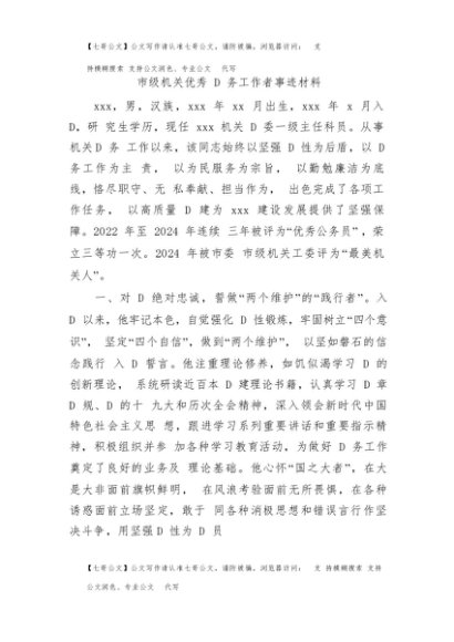 / 【七哥公文】2025年:市级机关优秀党务工作者事迹材料+更多免费公文+VX:QiGeGongWen2024