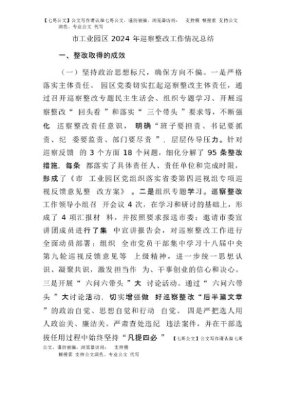 / 【七哥公文】2025年:市工业园区巡察整改工作情况总结+更多免费公文+VX:QiGeGongWen2024