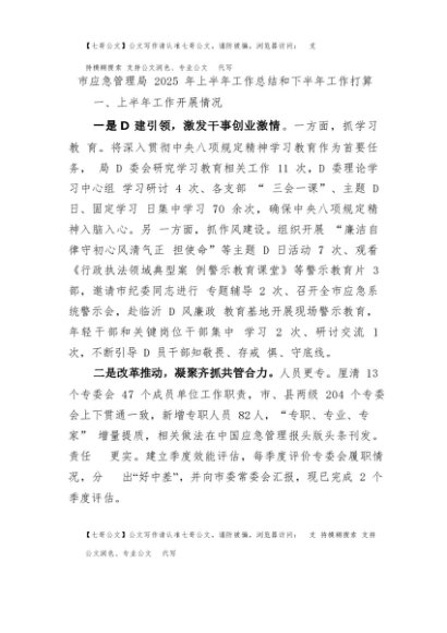 【七哥公文】2025年:市应急管理局2025年上半年工作总结和下半年工作打算+更多免费公文+VX:QiGeGongWen2024