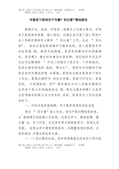 / 【七哥公文】2025年:市委老干部局关于专题“回头看”情况报告+更多免费公文+VX:QiGeGongWen2024