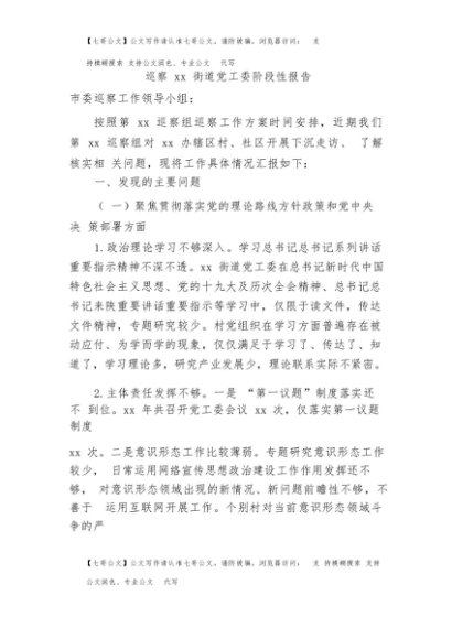 / 【七哥公文】2025年:巡察组在巡察街道党工委阶段性报告+更多免费公文+VX:QiGeGongWen2024