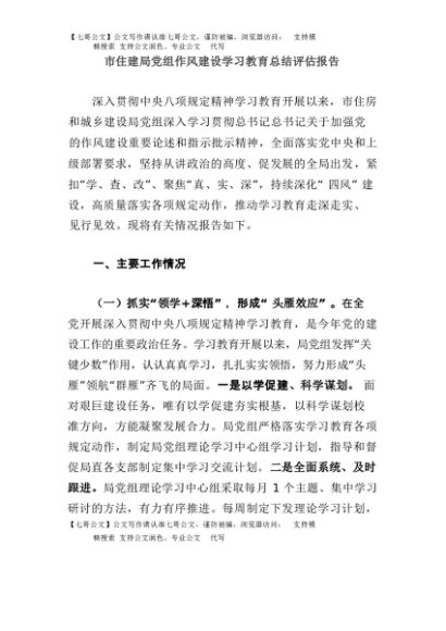 / 【七哥公文】2025年:市住建局党组作风建设学习教育总结评估报告+更多免费公文+VX:QiGeGongWen2024