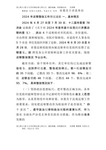 / 【七哥公文】2025年:市委关于市直单位巡察整改工作情况通报+更多免费公文+VX:QiGeGongWen2024