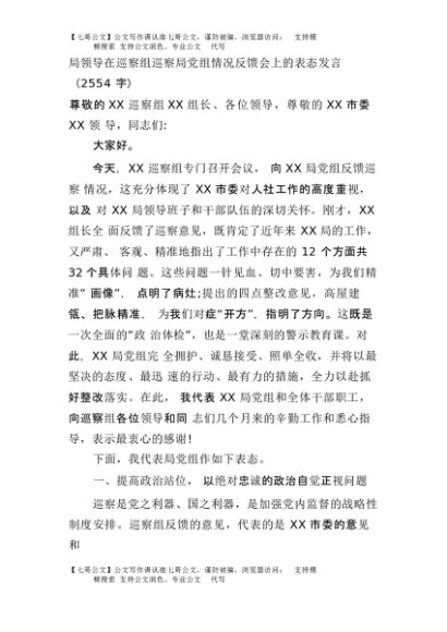 【七哥公文】2025年:局领导在巡察组巡察局党组情况反馈会上的表态发言(2554字)+更多免费公文+VX:QiGeGongWen2024