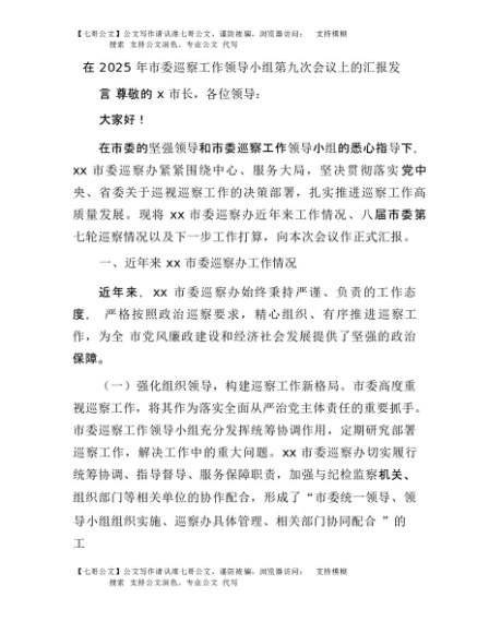 / 【七哥公文】2025年:市委巡察工作领导小组第九次会议上的汇报发言+更多免费公文+VX:QiGeGongWen2024