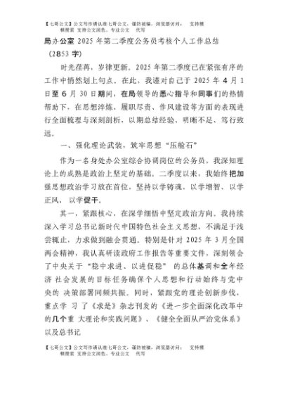 【七哥公文】2025年:局办公室2025年第二季度公务员考核个人工作总结(2853字)+更多免费公文+VX:QiGeGongWen2024