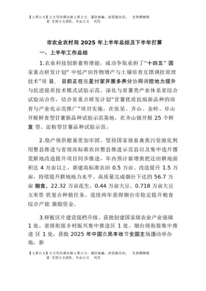 / 【七哥公文】2025年:市农业农村局2025年上半年总结及下半年打算+更多免费公文+VX:QiGeGongWen2024