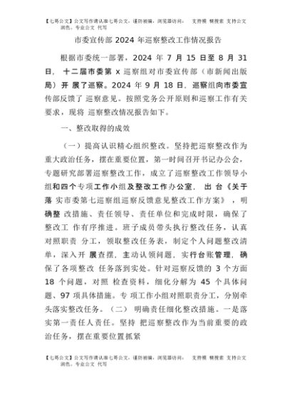 / 【七哥公文】2025年:市委宣传部巡察整改工作情况报告+更多免费公文+VX:QiGeGongWen2024