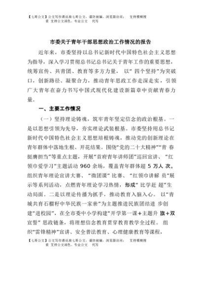 / 【七哥公文】2025年:市委关于青年干部思想政治工作情况的报告+更多免费公文+VX:QiGeGongWen2024