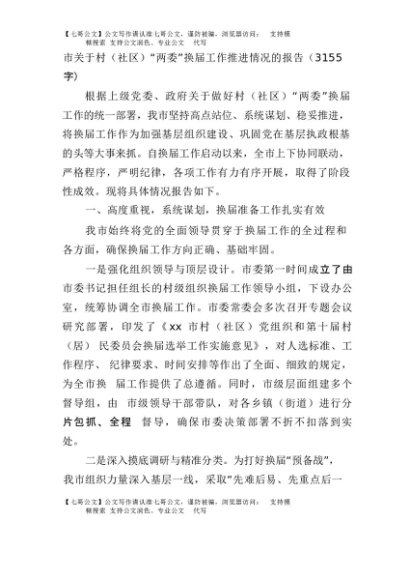 【七哥公文】2025年:市关于村(社区)“两委”换届工作推进情况的报告(3155字)+更多免费公文+VX:QiGeGongWen2024