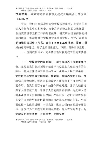 【七哥公文】2025年:市委常委、组织部部长在县市党校校长座谈会上的讲话(3286字)+更多免费公文+VX:QiGeGongWen2024