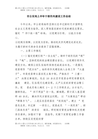 / 【七哥公文】2025年:市公安局上半年干部作风建设工作总结+更多免费公文+VX:QiGeGongWen2024