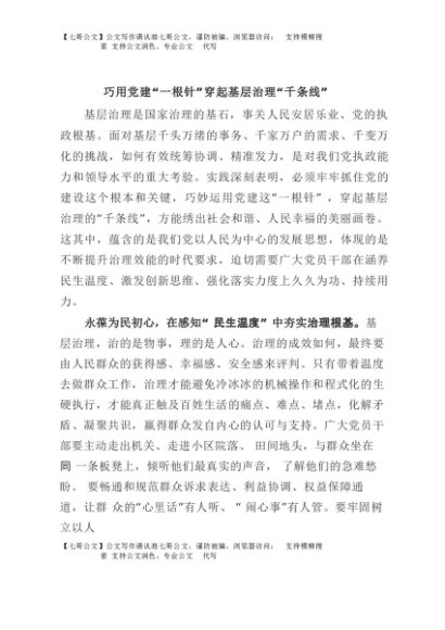 / 【七哥公文】2025年:巧用党建“一根针” 穿起基层治理“千条线”+更多免费公文+VX:QiGeGongWen2024