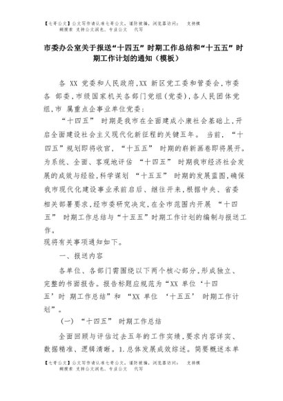【七哥公文】2025年:市委办公室关于报送“十四五”时期工作总结和“十五五”时期工作计划的通知(模板)+更多免费公文+VX:QiGeGongWen2024