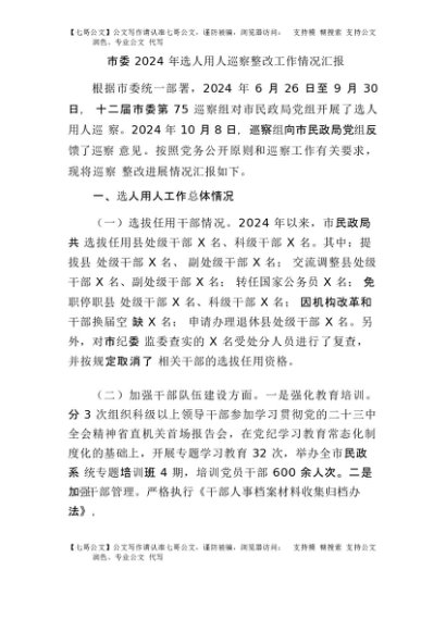 / 【七哥公文】2025年:市委年选人用人巡察整改工作情况汇报+更多免费公文+VX:QiGeGongWen2024