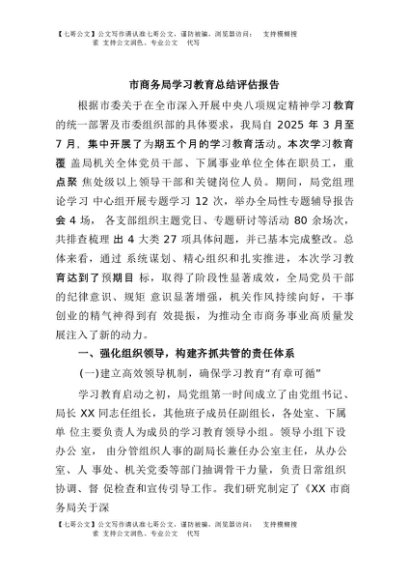 / 【七哥公文】2025年:市商务局学习教育总结评估报告+更多免费公文+VX:QiGeGongWen2024
