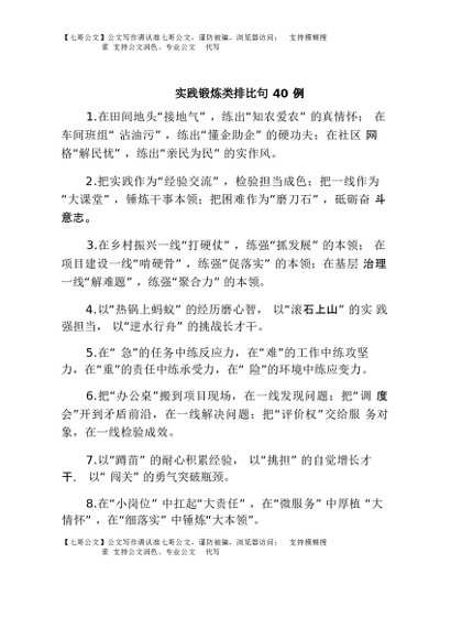 【七哥公文】2025年:实践锻炼类排比句40例+更多免费公文+VX:QiGeGongWen2024