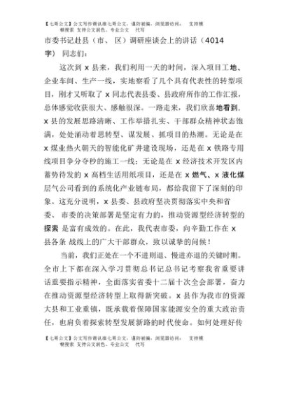 【七哥公文】2025年:市委书记赴县(市、区)调研座谈会上的讲话(4014字)+更多免费公文+VX:QiGeGongWen2024