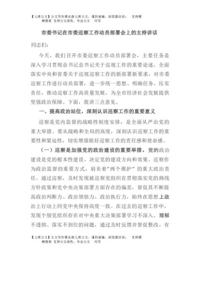 / 【七哥公文】2025年:市委书记在市委巡察工作动员部署会上的主持讲话+更多免费公文+VX:QiGeGongWen2024