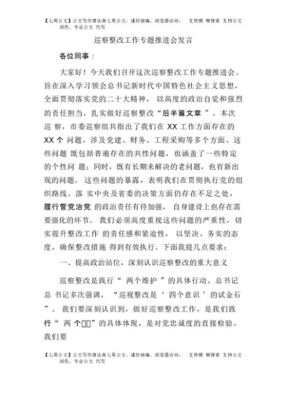 / 【七哥公文】2025年:巡察整改工作专题推进会发言+更多免费公文+VX:QiGeGongWen2024