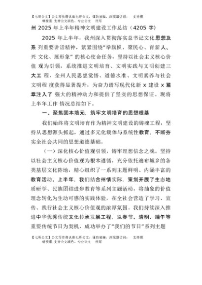 【七哥公文】2025年:州2025年上半年精神文明建设工作总结(4205字)+更多免费公文+VX:QiGeGongWen2024