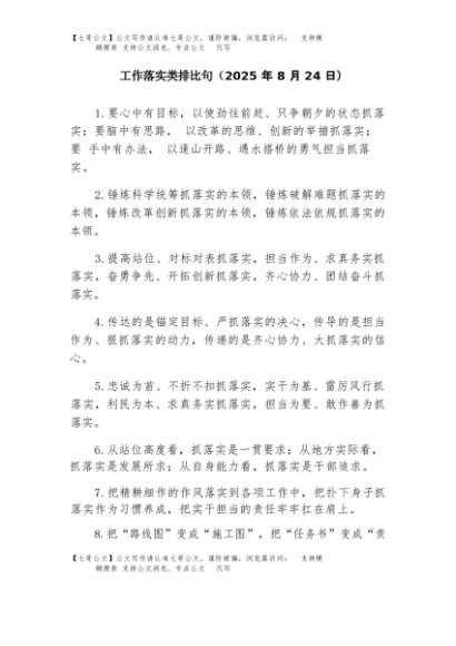 / 【七哥公文】2025年:工作落实类排比句(2025年9月)+更多免费公文+VX:QiGeGongWen2024