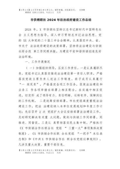 / 【七哥公文】2025年:市供销联社2024年法治政府建设工作总结+更多免费公文+VX:QiGeGongWen2024