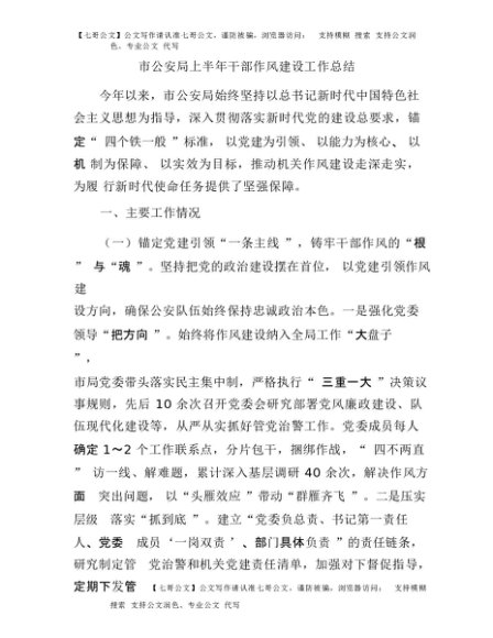 / 【七哥公文】2025年:市公安局上半年干部作风建设工作总结3300字+更多免费公文+VX:QiGeGongWen2024