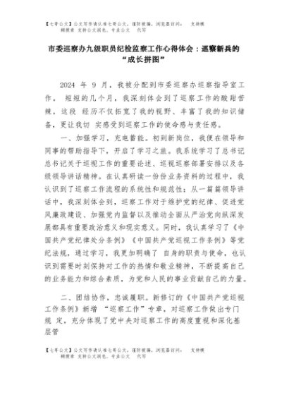 【七哥公文】2025年:市委巡察办九级职员纪检监察工作心得体会:巡察新兵的“成长拼图”+更多免费公文+VX:QiGeGongWen2024