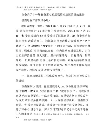 【七哥公文】2025年:市委关于十一届省委第七轮巡视(巡察)整改进展情况的报告+更多免费公文+VX:QiGeGongWen2024