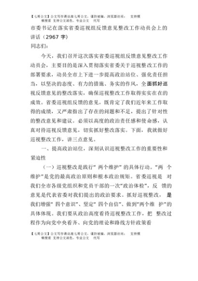 【七哥公文】2025年:市委书记在落实省委巡视组反馈意见整改工作动员会上的讲话(2967字)+更多免费公文+VX:QiGeGongWen2024