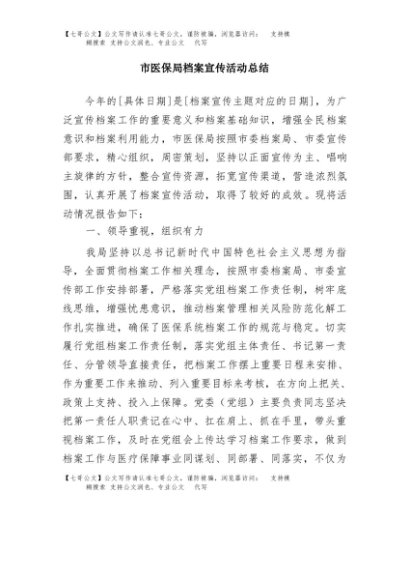 / 【七哥公文】2025年:市医保局档案宣传活动总结+更多免费公文+VX:QiGeGongWen2024