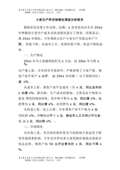 【七哥公文】2025年:小麦生产和市场情况调查分析报告+更多免费公文+VX:QiGeGongWen2024