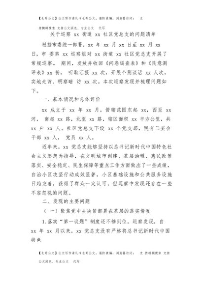 【七哥公文】2025年:巡察社区党总支问题清单+更多免费公文+VX:QiGeGongWen2024
