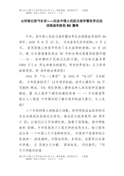 【七哥公文】2025年:山河铭记 浩气长存——纪念中国人民抗日战争暨世界反法西斯战争胜利80周年+更多免费公文+VX:QiGeGongWen2024