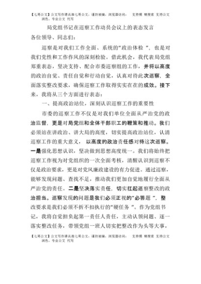 / 【七哥公文】2025年:局党组书记在巡察工作动员会议上的表态发言+更多免费公文+VX:QiGeGongWen2024