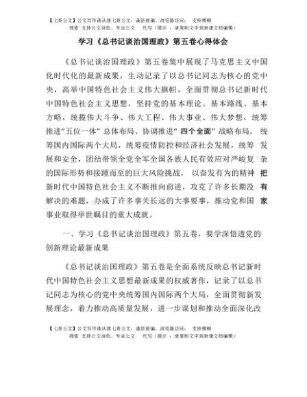 【七哥公文】2025年:学习《总书记谈治国理政》第五卷心得体会+更多免费公文+VX:QiGeGongWen2024