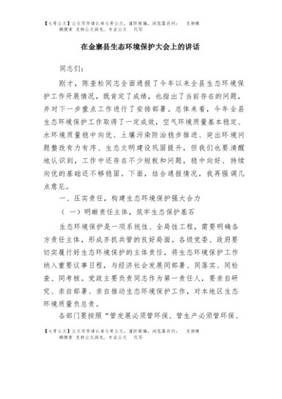/ 【七哥公文】2025年:在金寨县生态环境保护大会上的讲话+更多免费公文+VX:QiGeGongWen2024