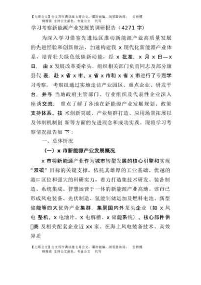 / 【七哥公文】2025年:学习考察新能源产业发展的调研报告(4271字)+更多免费公文+VX:QiGeGongWen2024