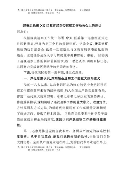 【七哥公文】2025年:巡察组长在XX区教育局党委巡察工作动员会上的讲话+更多免费公文+VX:QiGeGongWen2024