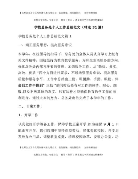 【七哥公文】2025年:学校总务处个人工作总结范文(精选31篇)+更多免费公文+VX:QiGeGongWen2024