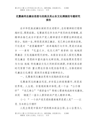 【七哥公文】2025年:孔繁森同志廉洁思想与实践及其山东文化渊源的专题研究报告+更多免费公文+VX:QiGeGongWen2024