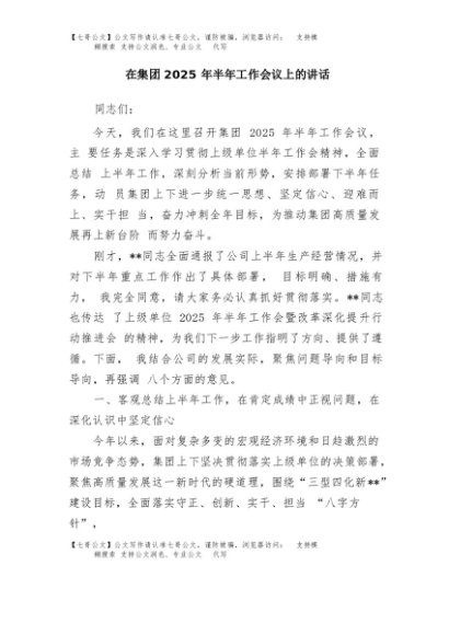 / 【七哥公文】2025年:在集团2025年半年工作会议上的讲话+更多免费公文+VX:QiGeGongWen2024