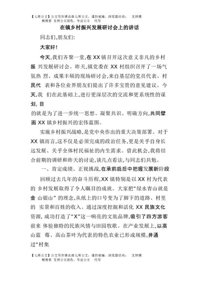 / 【七哥公文】2025年:在镇乡村振兴发展研讨会上的讲话+更多免费公文+VX:QiGeGongWen2024