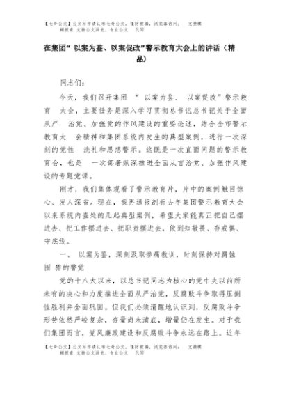 【七哥公文】2025年:在集团“以案为鉴、以案促改”警示教育大会上的讲话(精品)+更多免费公文+VX:QiGeGongWen2024