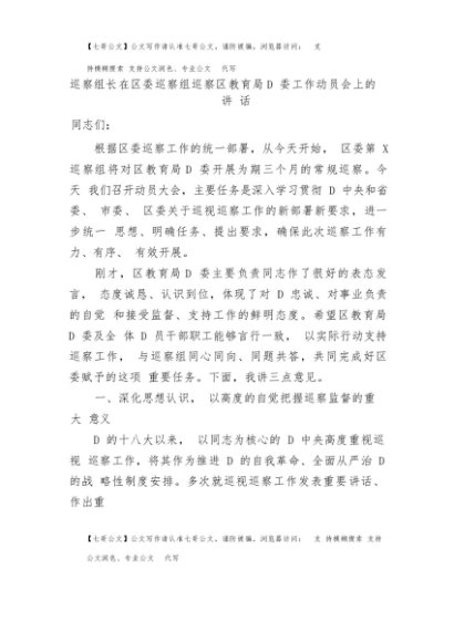 【七哥公文】2025年:巡察组长在区委巡察组巡察区教育局党委工作动员会上的讲话+更多免费公文+VX:QiGeGongWen2024