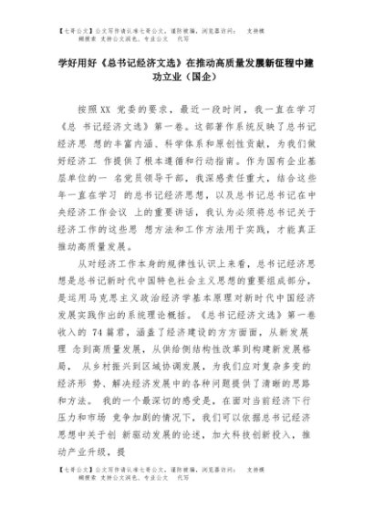 【七哥公文】2025年:学好用好《总书记经济文选》 在推动高质量发展新征程中建功立业(国企)+更多免费公文+VX:QiGeGongWen2024