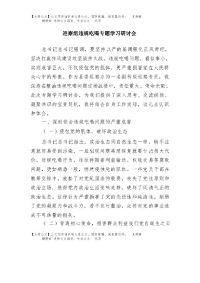 【七哥公文】2025年:巡察组违规吃喝专题学习研讨会+更多免费公文+VX:QiGeGongWen2024