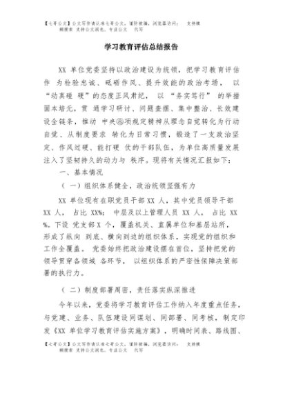 / 【七哥公文】2025年:学习教育评估总结报告+更多免费公文+VX:QiGeGongWen2024