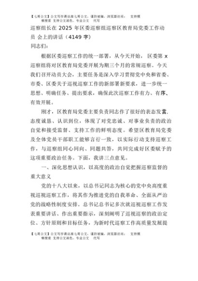 【七哥公文】2025年:巡察组长在2025年区委巡察组巡察区教育局党委工作动员会上的讲话(4149字)+更多免费公文+VX:QiGeGongWen2024